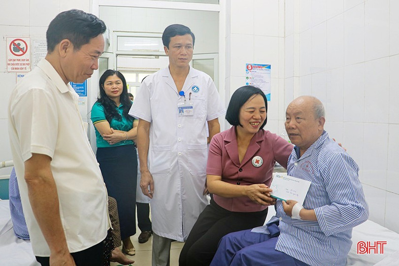Trong khuôn khổ chương trình, các đại biểu cũng đến trao tặng 20 suất quà cho bệnh nhân có hoàn cảnh khó khăn tại Trung tâm Y tế thành phố Hà Tĩnh.