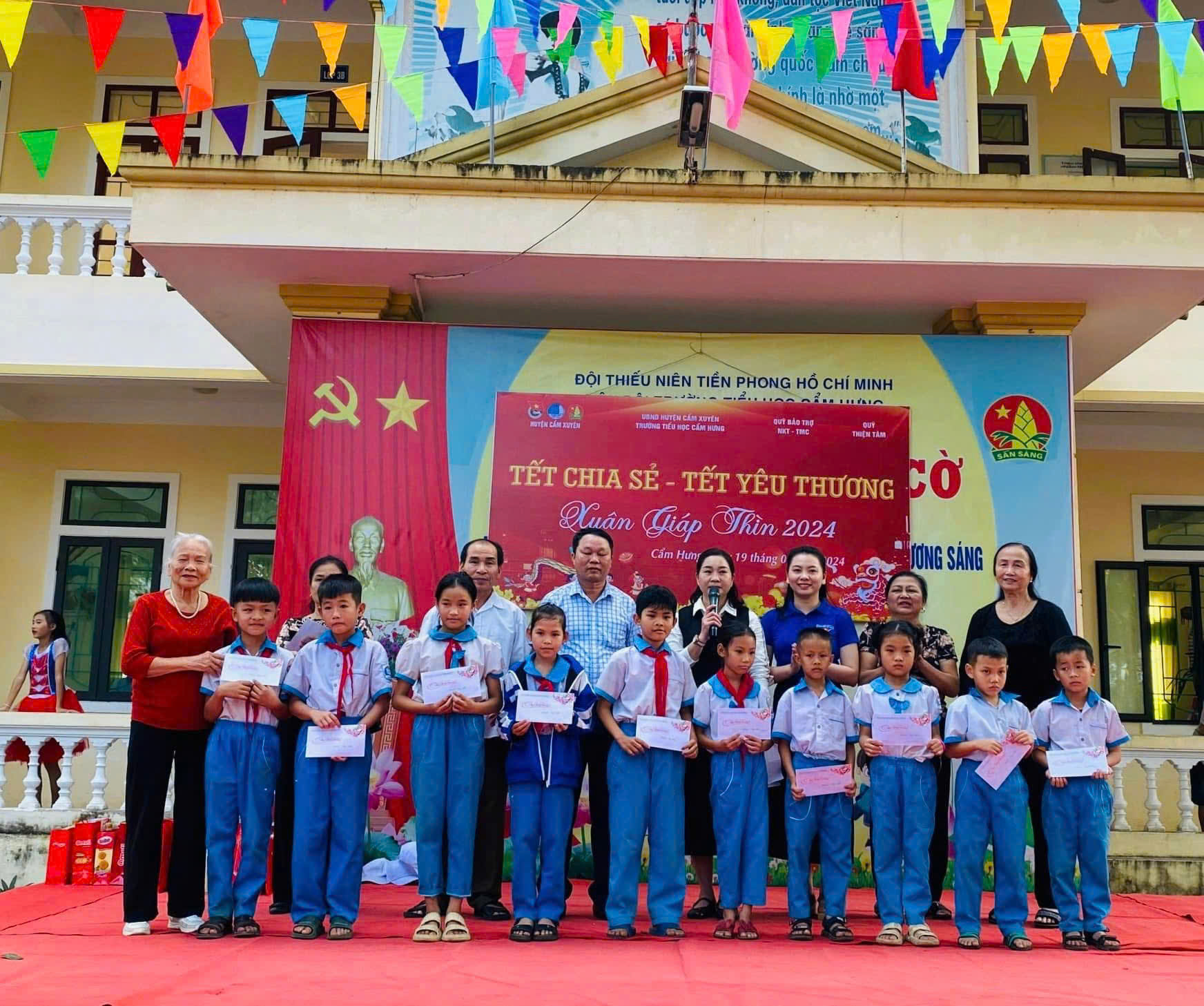 Tổ Tự Tâm "Bát cháo tỉnh thương" Thị trấn Cẩm Xuyên trao quà Tết cho các em học sinh khó khăn