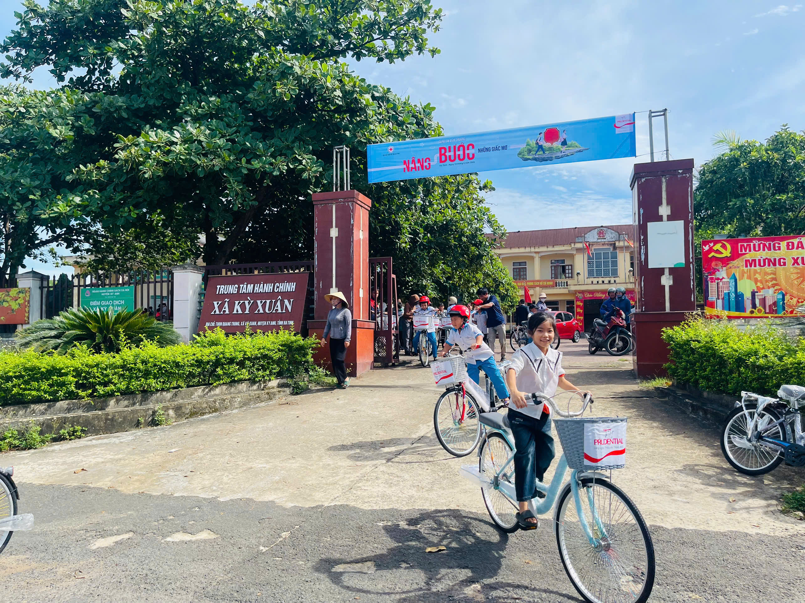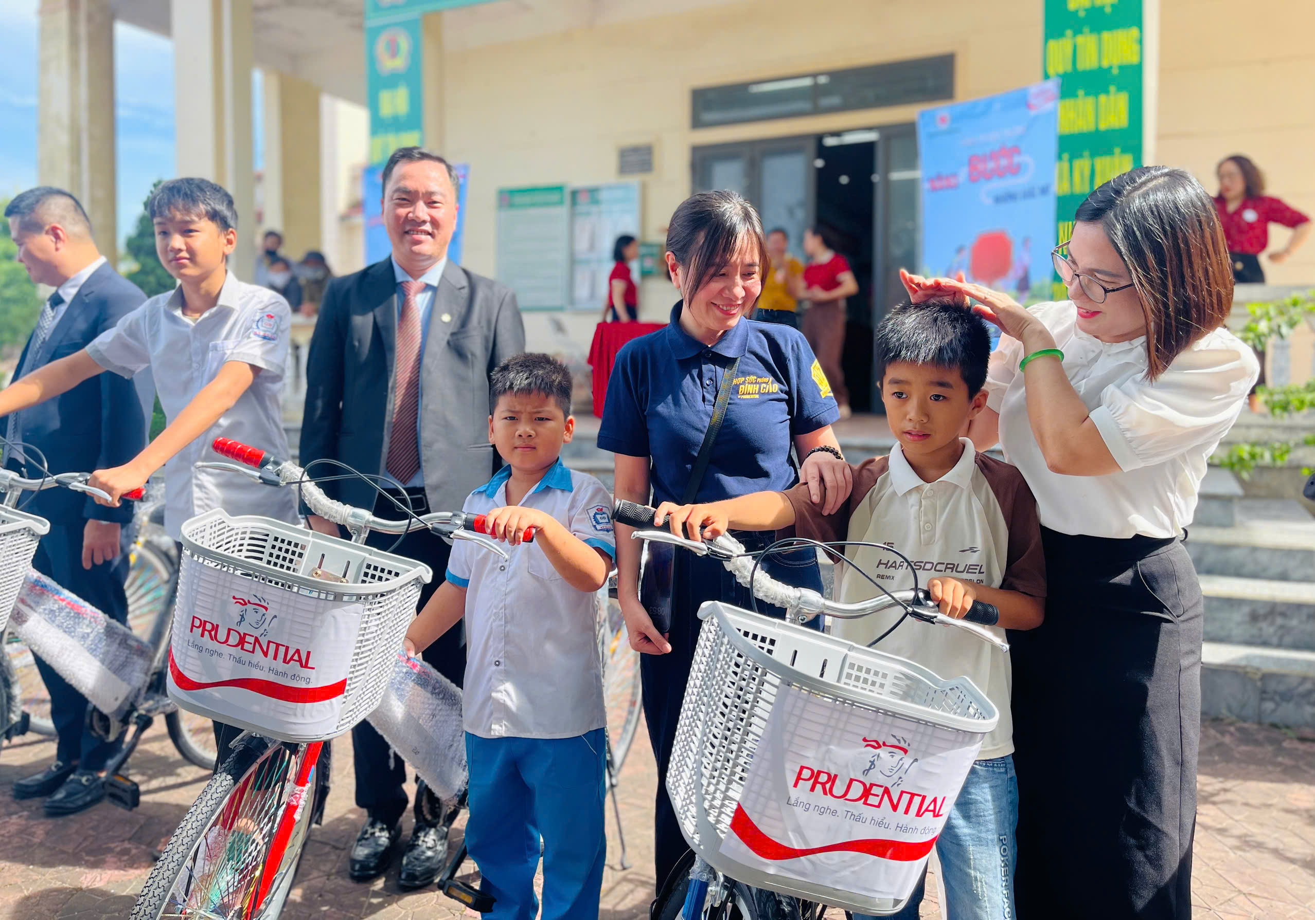 Tại chương trình, Prudential Việt Nam đã trao tặng 33 chiếc xe đạp với tổng trị giá 50 triệu đồng cho 33 em học sinh có hoàn cảnh khó khăn, vươn lên học giỏi tại 4 xã thuộc huyện Kỳ Anh. Những món quà ý nghĩa này không chỉ giúp các em có phương tiện đến trường thuận tiện hơn, mà còn là sự khích lệ, động viên để các em tiếp tục nỗ lực trong học tập và rèn luyện.