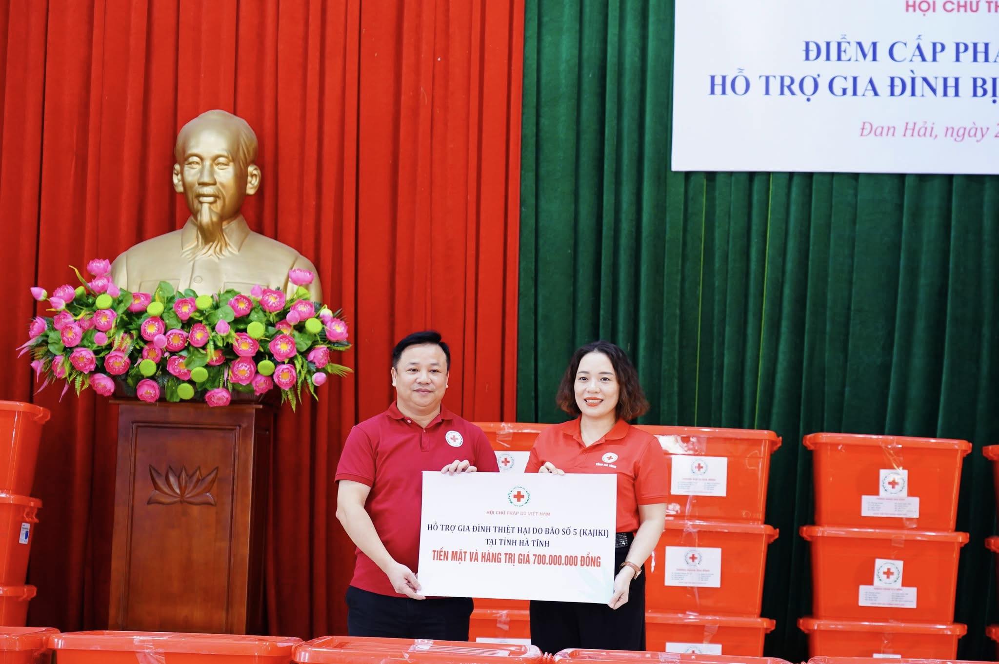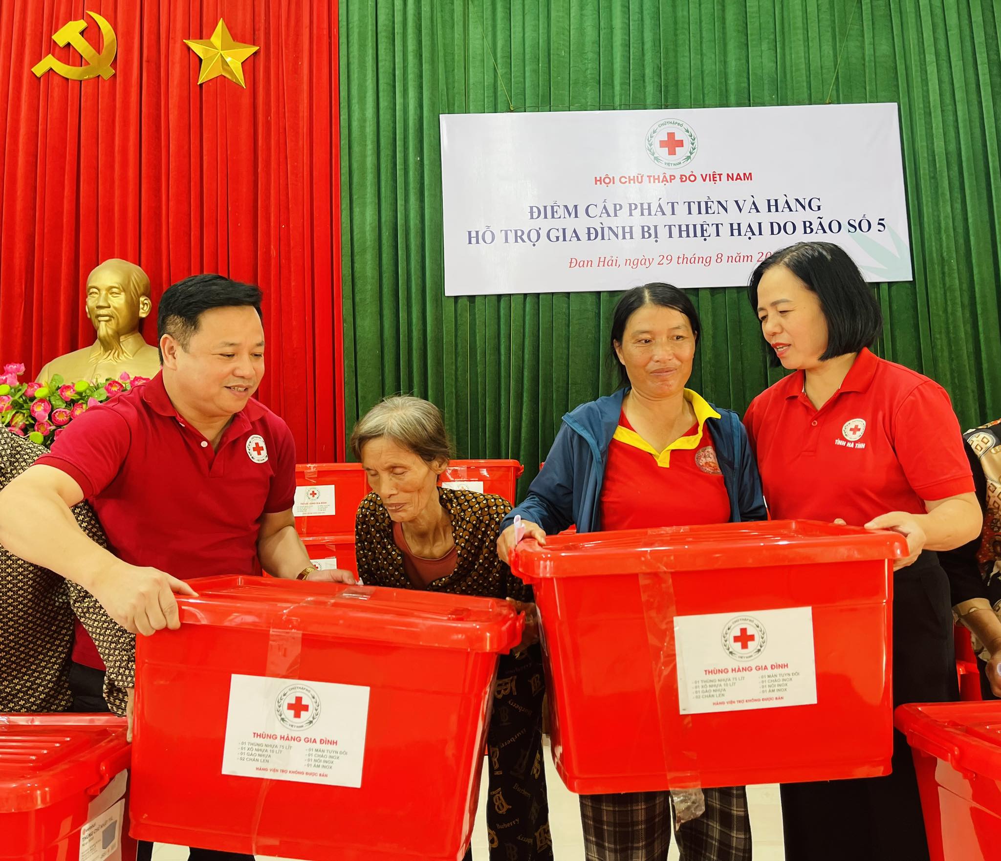 Như vậy, trong khuôn khổ nguồn cứu trợ khẩn cấp của Trung ương Hội Chữ thập đỏ Việt Nam, Hội Chữ thập đỏ tỉnh đã trao hỗ trợ 95 triệu tiền mặt và 400 thùng hàng gia đình với tổng giá trị 575 triệu đồng cho bà con nhân dân tại xã Đan Hải và xã Cổ Đạm.Số tiền và hàng còn lại tỉnh Hội sẽ kịp thời hỗ trợ cho người dân bị thiệt hại do bão số 5 tại một số địa phương khác trong tỉnh.