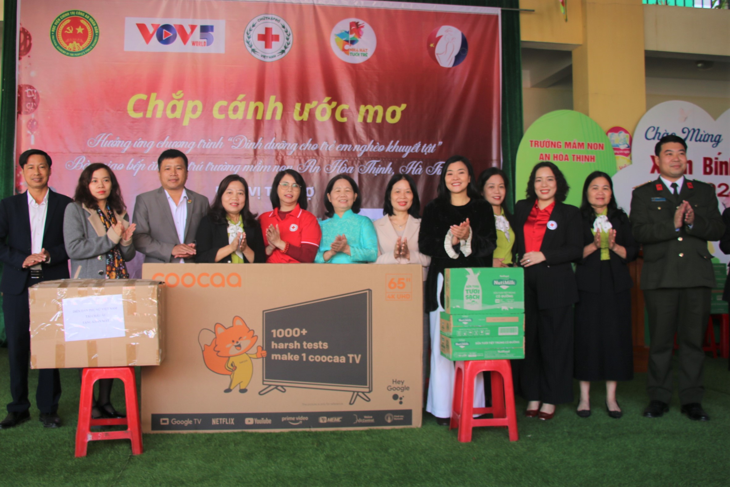 Tham dự Chương trình có các đồng chí: Lương Thị Hồng Thúy – Ủy viên Ban Thường vụ, Trưởng ban Đối ngoại và Truyền thông Trung ương Hội Chữ thập đỏ Việt Nam; Trần Thị Hải Việt – Phó Chủ tịch Hội Chữ thập đỏ tỉnh Hà Tĩnh; đại diện các nhà tài trợ, cấp ủy, chính quyền địa phương cùng đông đảo cán bộ, giáo viên, phụ huynh và Nhân dân xã Sơn Tiến.