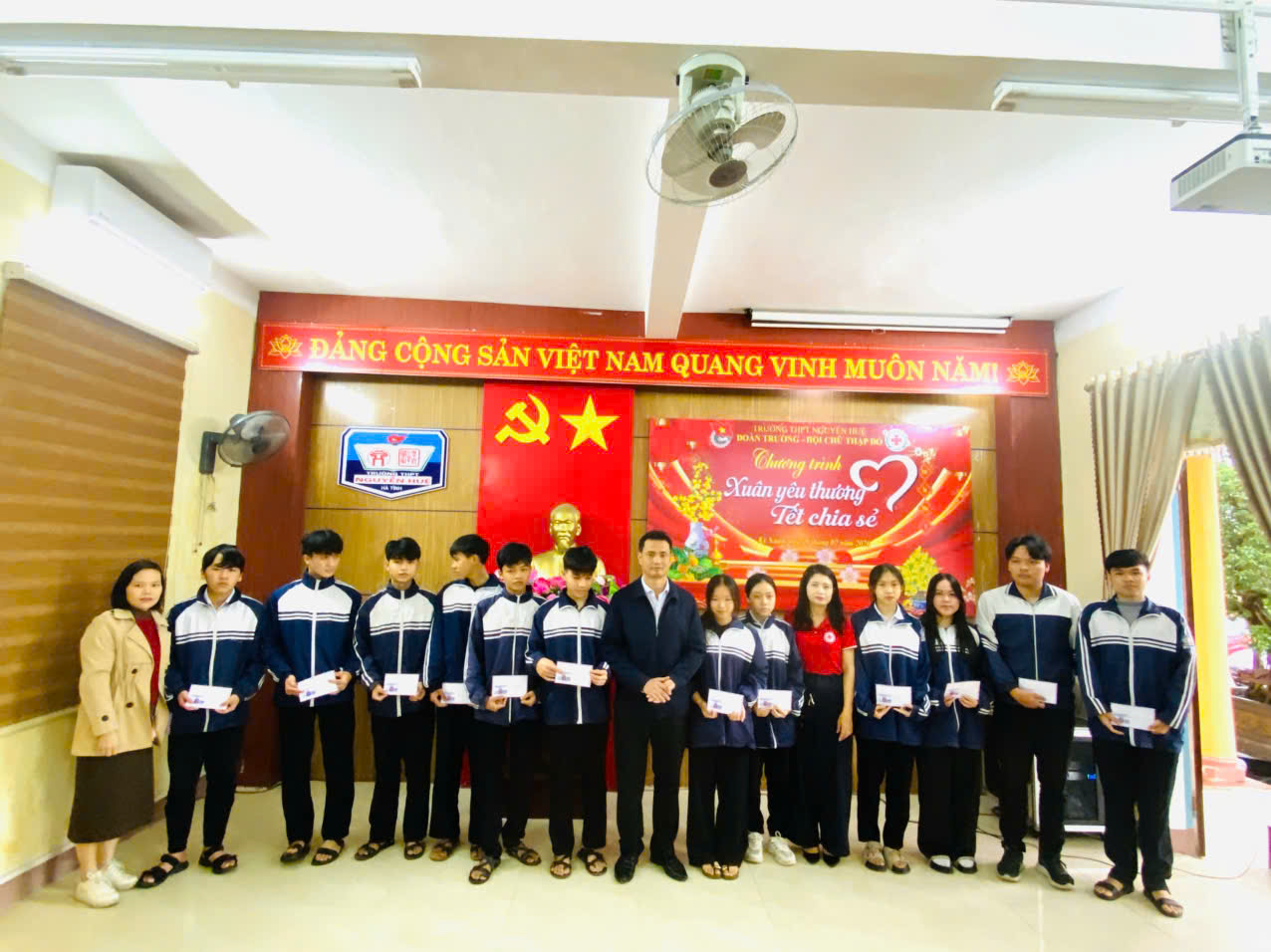 Sáng ngày 09/02/2026 Hội Chữ thập đỏ và Đoàn trường THPT Nguyễn Huệ đã phối hợp tổ chức chương trình trao quà Tết cho học sinh có hoàn cảnh khó khăn vươn lên trong học tập. Tại chương trình đã trao 126 suất quà, mỗi suất trị giá 500.000 đồng. Góp phần động viên tinh thần, chia sẻ khó khăn và tiếp thêm động lực để các em yên tâm học tập, đón một cái Tết trọn vẹn hơn. nguồn kinh phí này được trích từ lợi nhuận của các gian hàng học sinh trong Hội chợ “Xuân yêu thương – Tết sum vầy”, do Đoàn trường tổ chức nhân Ngày học sinh, sinh viên 09/01/2026. Số còn lại trích từ quỹ Chữ thập đỏ trường.