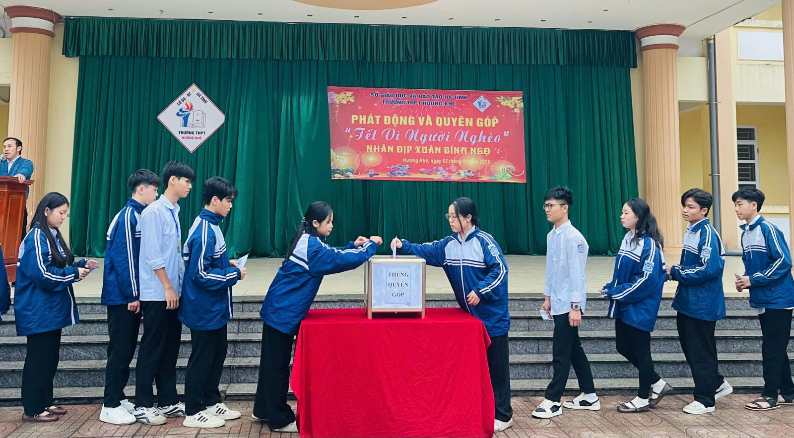 Sáng ngày 02/02/2026, Trường THPT Hương Khê tổ chức Lễ phát động quyên góp “Tết vì người nghèo”. Phong trào đã nhận được sự tham gia tích cực của tập thể nhà trường, với tổng số tiền quyên góp từ cán bộ, giáo viên là 11.800.000 đồng và từ học sinh là 36.918.000 đồng. Những con số đó thể hiện rõ nét truyền thống “lá lành đùm lá rách”, tinh thần tương thân tương ái được bồi đắp trong môi trường giáo dục.