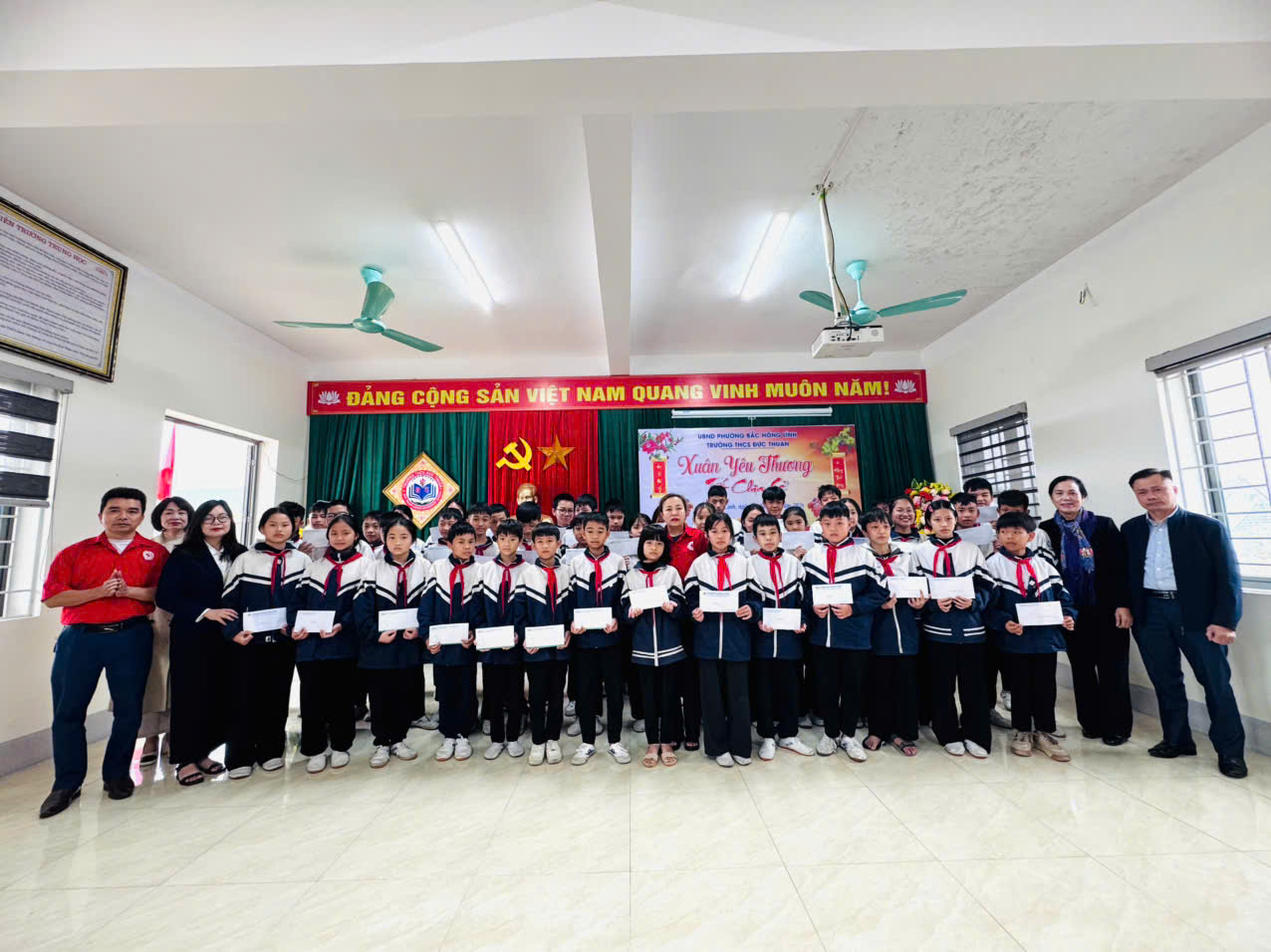 Sáng ngày 09/02/2026, Hội Chữ thập đỏ – Bảo trợ xã hội phường Bắc Hồng Lĩnh tiếp tục kết nối với Ngân hàng BIDV Chi nhánh Hồng Lĩnh, Hợp tác xã Tín dụng Đức Thuận và Chi hội Chữ thập đỏ – BTXH Trường THCS Đức Thuận, tổ chức trao 47 suất quà, tổng trị giá 25.500.000 đồng cho các em học sinh nghèo, cận nghèo, mồ côi, học sinh khuyết tật và học sinh có hoàn cảnh đặc biệt khó khăn nhân dịp Tết cổ truyền dân tộc.