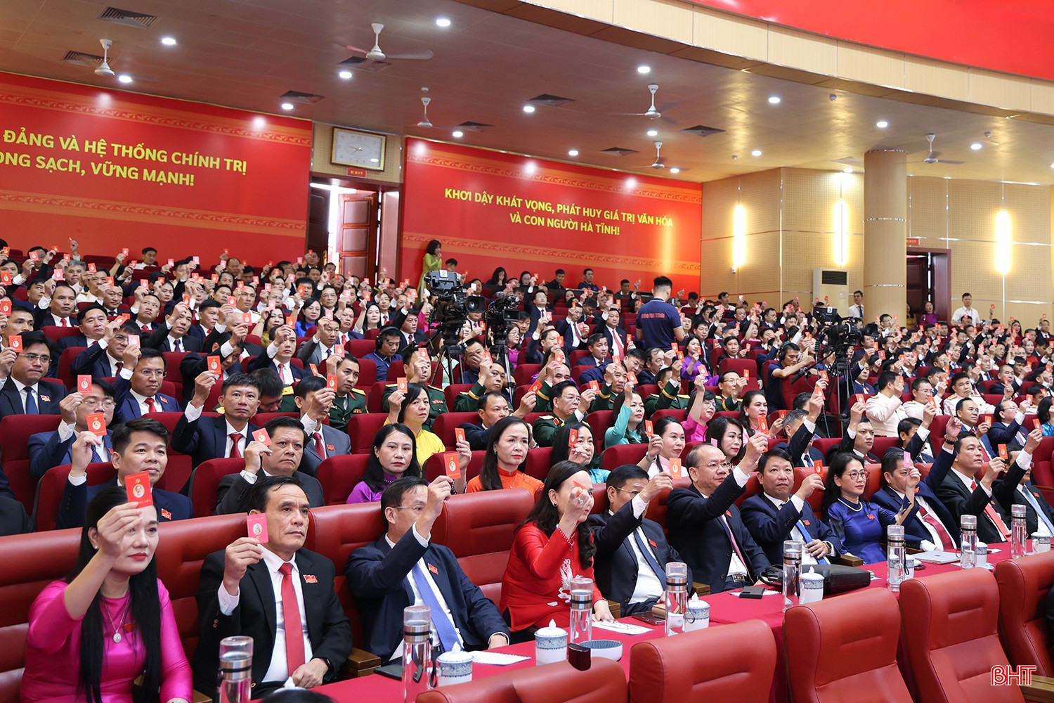 Với trách nhiệm và sự thống nhất cao, 100% đại biểu đã biểu quyết thông qua Nghị quyết Đại hội Đảng bộ tỉnh lần thứ XX 2025 - 2030.