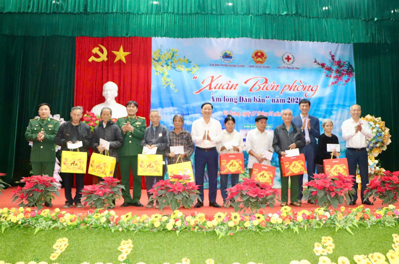 Tại chương trình, Ban Tổ chức đã trao tặng 200 suất quà Tết, mỗi suất trị giá 500.000 đồng, với tổng kinh phí huy động từ sự đóng góp của các cơ quan, doanh nghiệp, nhà hảo tâm và cán bộ, chiến sĩ Đồn Biên phòng Hương Quang. Những phần quà ý nghĩa đã được trao tận tay các gia đình chính sách, hộ nghèo, người già neo đơn, người khuyết tật và các em học sinh có hoàn cảnh khó khăn trên địa bàn xã.