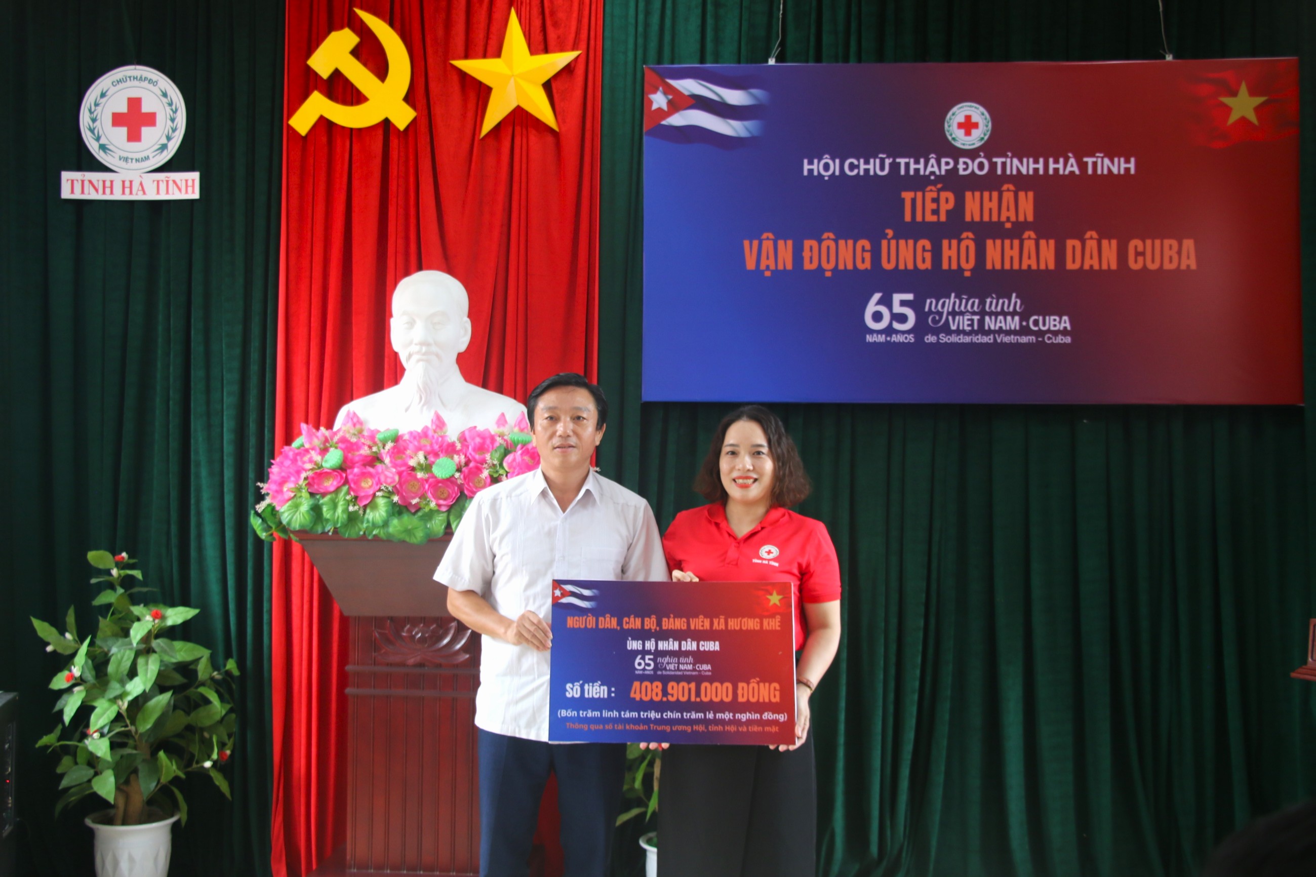 Tại buổi lễ, Hội Chữ thập đỏ tỉnh Hà Tĩnh đã tiếp nhận biển ủng hộ của 10 cơ quan, đơn vị trong tỉnh. Trong đó, riêng cán bộ, đảng viên và các tầng lớp nhân dân xã Hương Khê trao biển ủng hộ chương trình vận động ủng hộ nhân dân Cuba với tổng số tiền 408,901 triệu đồng, bao gồm cả tiền chuyển khoản của các tổ chức, cá nhân thuộc xã chuyển qua tài khoản Trung ương Hội, tỉnh Hội và 287,064 triệu đồng tiền mặt ủng hộ tại chương trình.