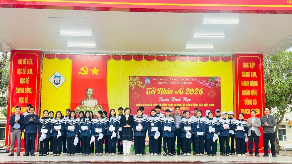 Trường THPT Nguyễn Du đã triển khai Phong trào “Tết Nhân ái” năm 2026, vận động cán bộ, giáo viên và cha mẹ học sinh. Sau thời gian phát động, nhà trường đã huy động được tổng số tiền 65.352.000 đồng, trong đó trích một phần gửi về Quỹ Vì người nghèo của tỉnh, phần còn lại trao hỗ trợ cho 97 học sinh và 04 giáo viên có hoàn cảnh khó khăn với mức hỗ trợ từ 500.000 đến 1.000.000 đồng/suất.