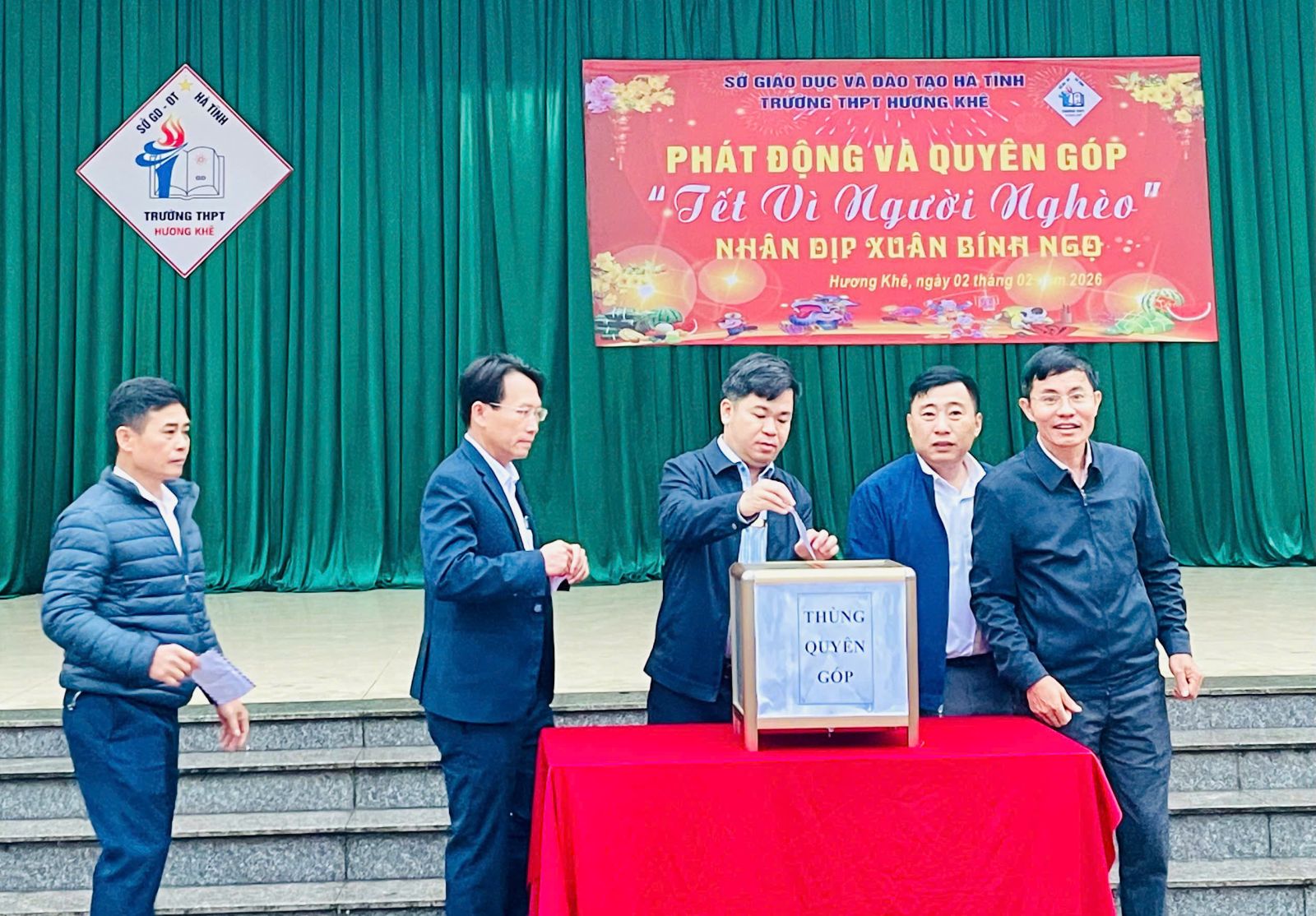Sáng ngày 02/02/2026, Trường THPT Hương Khê tổ chức Lễ phát động quyên góp “Tết vì người nghèo”. Phong trào đã nhận được sự tham gia tích cực của tập thể nhà trường, với tổng số tiền quyên góp từ cán bộ, giáo viên là 11.800.000 đồng và từ học sinh là 36.918.000 đồng. Những con số đó thể hiện rõ nét truyền thống “lá lành đùm lá rách”, tinh thần tương thân tương ái được bồi đắp trong môi trường giáo dục.