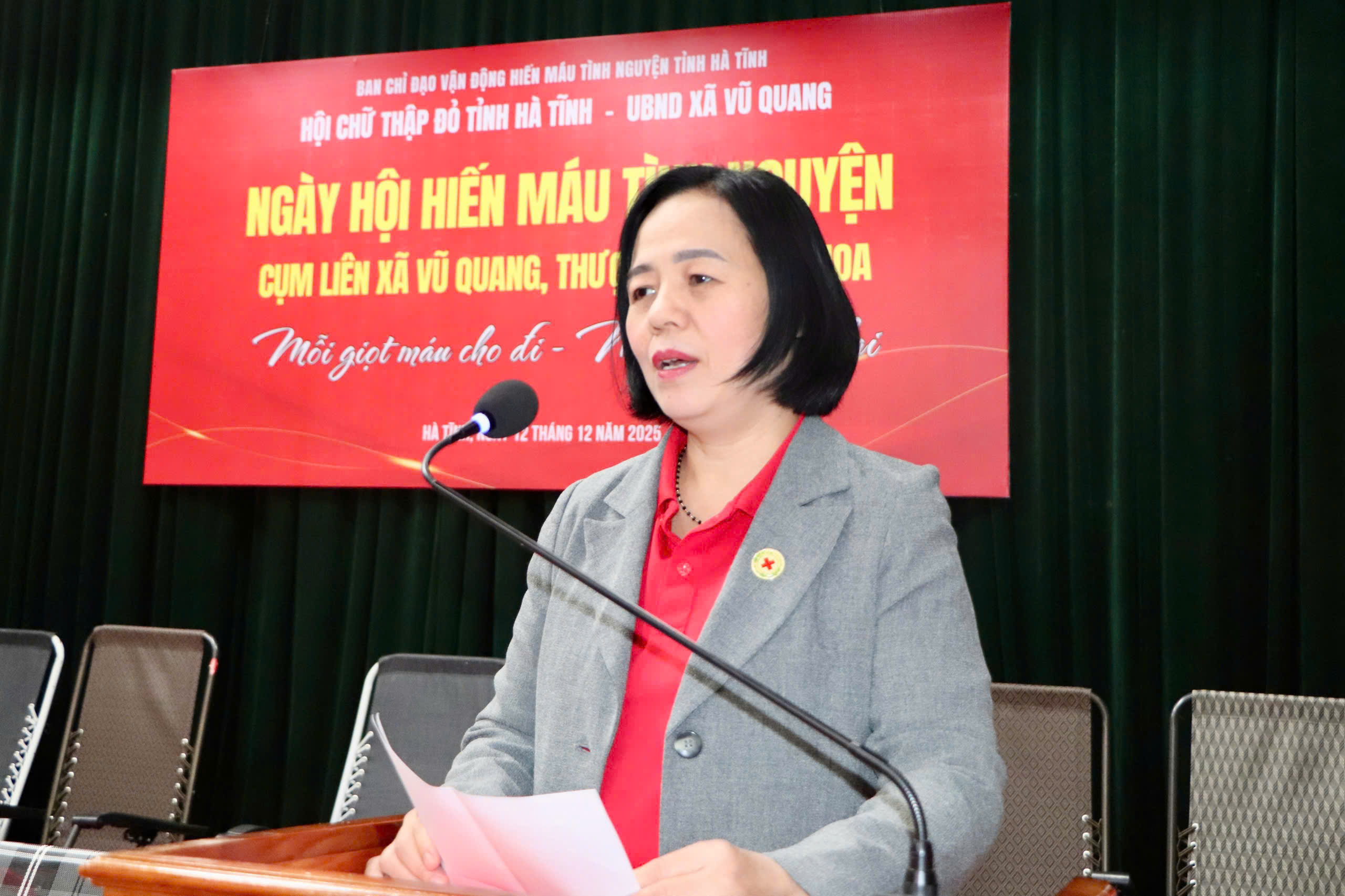 Hội Chữ thập đỏ tỉnh Hà Tĩnh ghi nhận và trân trọng cảm ơn sự phối hợp chặt chẽ của UBND xã Vũ Quang cùng các xã Thượng Đức, Mai Hoa; sự hỗ trợ chuyên môn của Bệnh viện Đa khoa tỉnh; đồng thời biểu dương tinh thần nhân ái, trách nhiệm cộng đồng của những người tình nguyện tham gia hiến máu. Đây là hoạt động có ý nghĩa thiết thực, góp phần lan tỏa giá trị nhân đạo và truyền thống sẻ chia của người dân Hà Tĩnh.