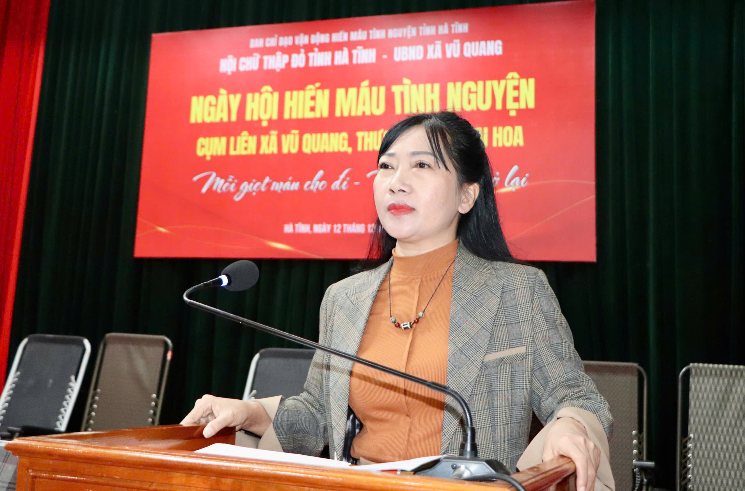 Phát biểu tại chương trình, đồng chí Lê Thị Mai Hoa nhấn mạnh vai trò của cấp ủy, chính quyền và các tổ chức đoàn thể trong việc tổ chức, vận động người dân tham gia hiến máu cứu người. Việc triển khai mô hình hiến máu liên cụm giúp mở rộng quy mô, nâng cao hiệu quả tuyên truyền và góp phần khắc phục tình trạng thiếu máu điều trị tại các cơ sở y tế thời gian gần đây.