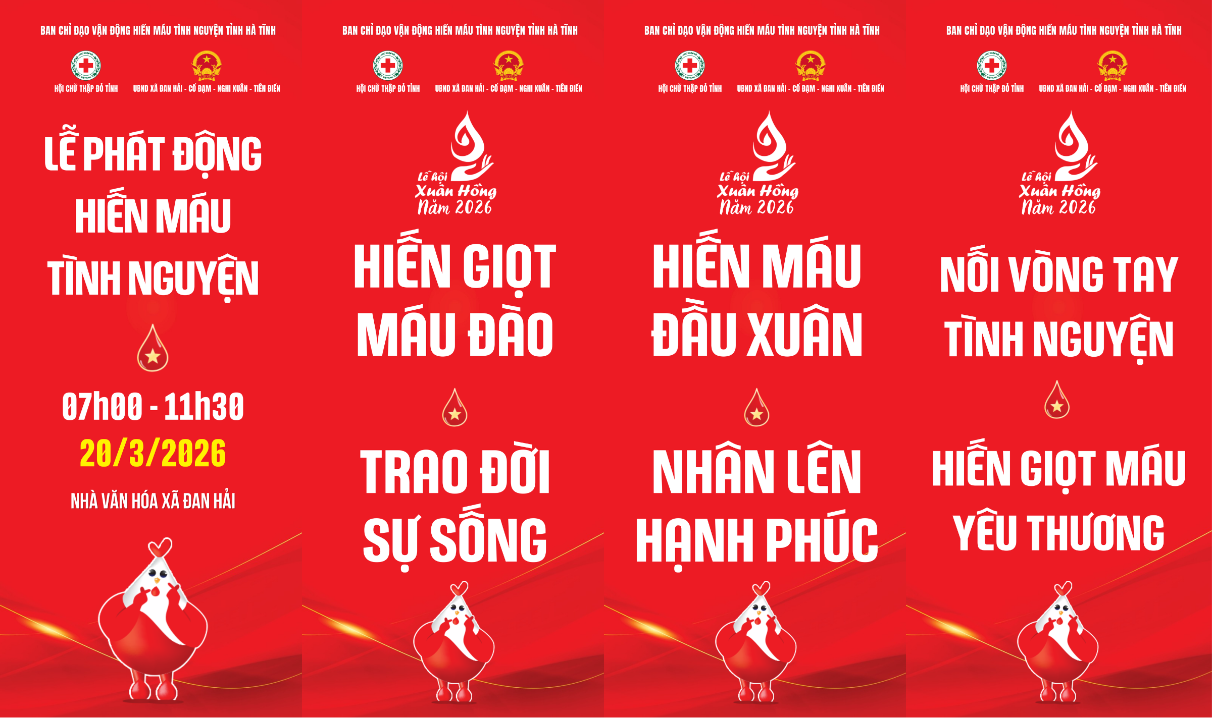 Chương trình dự kiến tổ chức vào ngày 20/3/2026 tại Nhà văn hóa xã Đan Hải, với mục tiêu huy động ít nhất 600 tình nguyện viên tham gia và tiếp nhận khoảng 500 đơn vị máu, tập trung vận động tại các địa phương: Đan Hải, Cổ Đạm, Tiên Điền, Nghi Xuân.